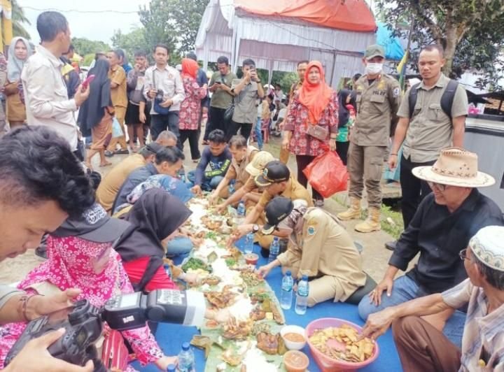 Bupati Lebak Iti Octavia Jayabaya dan warga makan bersama syukuran jalan mulus di Citeras, Selasa 21 Februari 2023 Sahrul Gunawan/Bantenraya