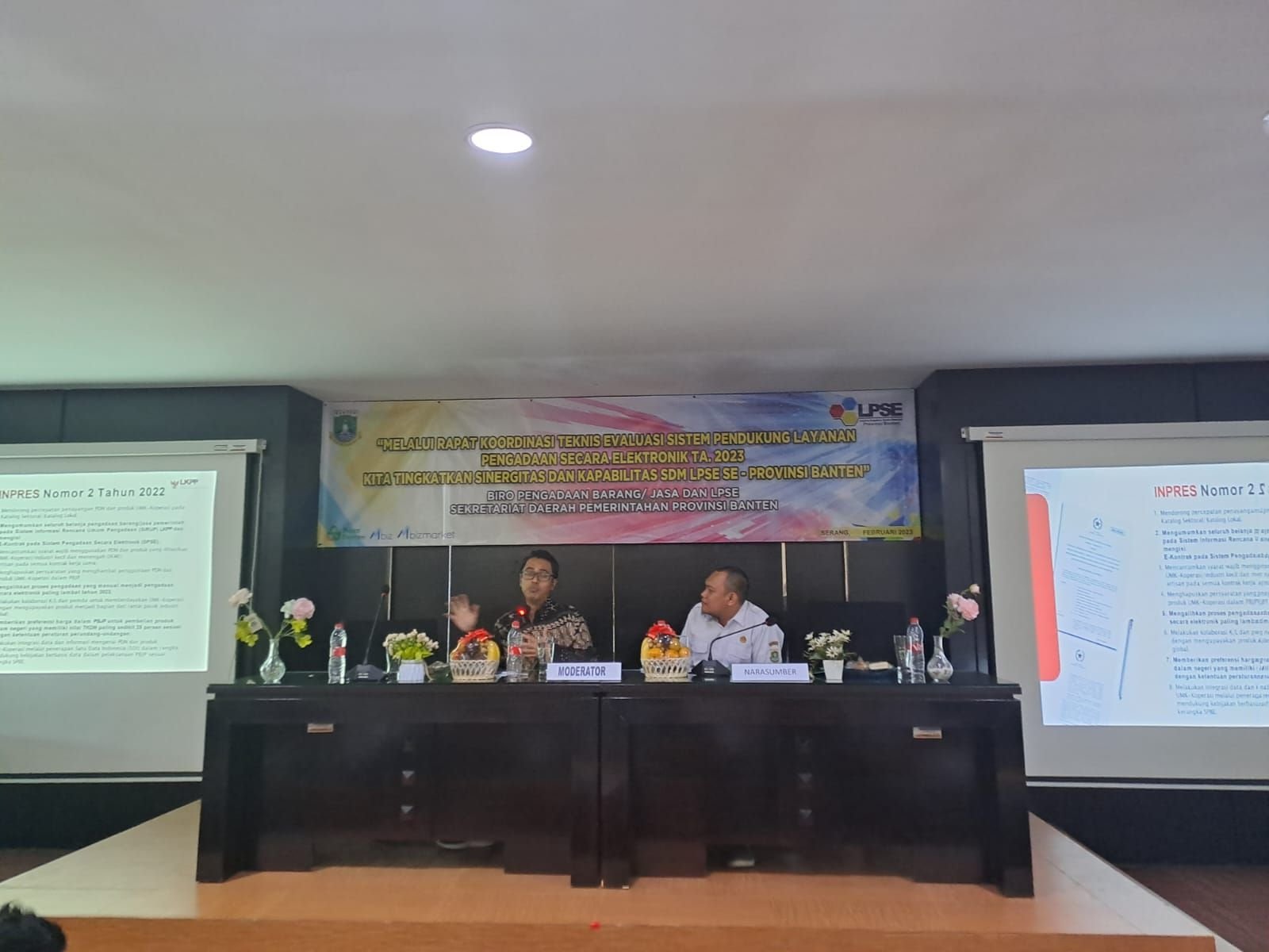 Salah satunua adalah dengan memggelar Rapat Koordinasi Teknis Evaluasi Sistem Pendukung Pengadaan Secafa Elektronik di lantai 8 Gedung Pelayanan satu atap di Kawasan Pusat Pemerintahan Provinsi Banten (KP3B), Rabu 22 Februari 2023.