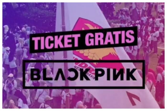 Dalam syarat-syarat tersebut, bagi yang ingin mendapatkan tiket konser BLACKPINK gratis harus berfoto menggunakan atribut Girlband Korea itu, lalu befoto di depan baliho Prabowo.