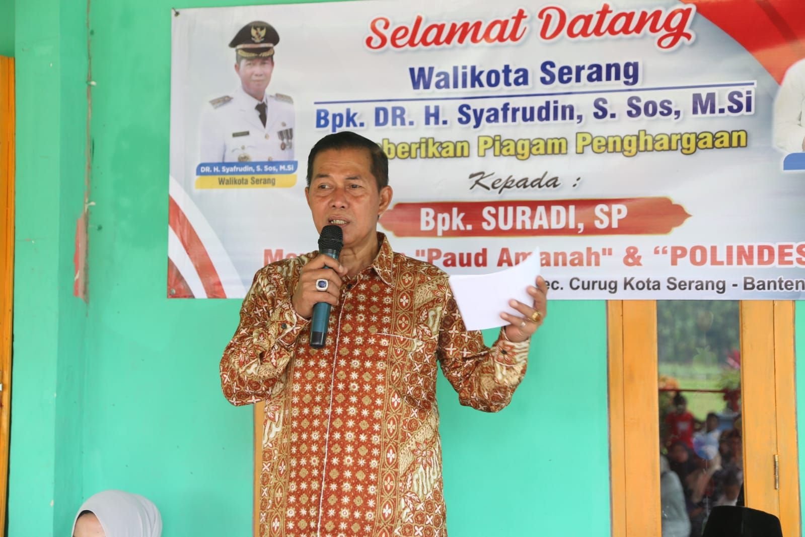 Walikota Serang Syafrudin mengapresiasi atas kontribusi Suradi yang telah menghibahkan tanah milik orang tuanya untuk masyarakat Sandiang.
