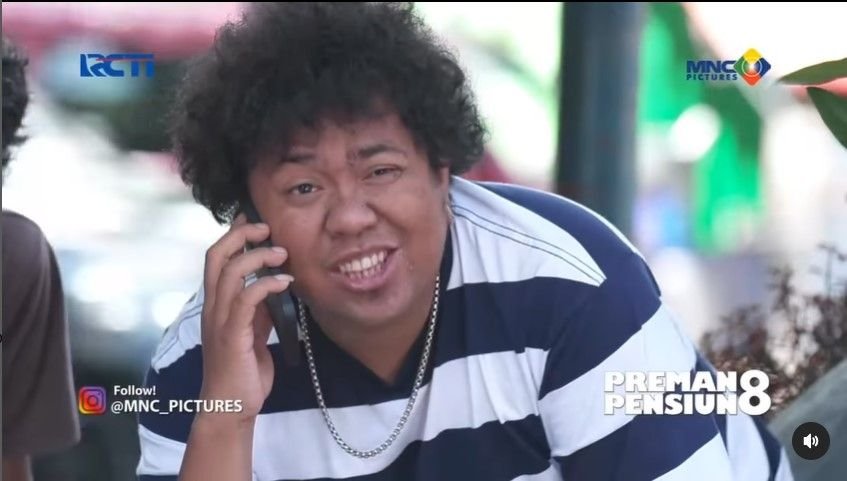Sosok Reza Aji sebagai Utar di Preman Pensiun 8 cukup mudah dikenali dengan ciri berbadan gempal dan berambut kribo.