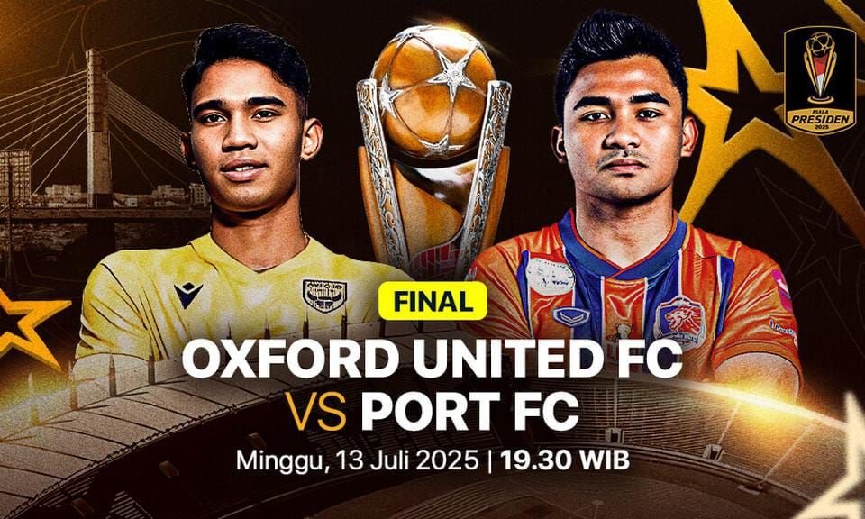 Duel Oxford United vs Port FC di final Piala Presiden akan dilaksanakan malam ini, tepatnya Minggu, 13 Juli 2025.