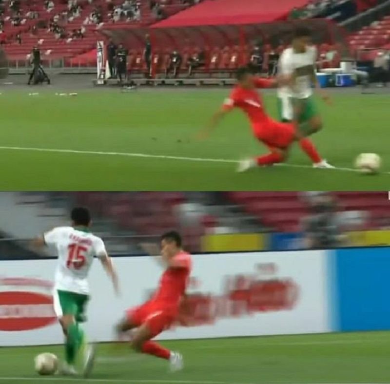 Tetapi wasit menganggapnya di luar kotak penalti, sehingga Indonesia hanya diberikan tendangan bebas.