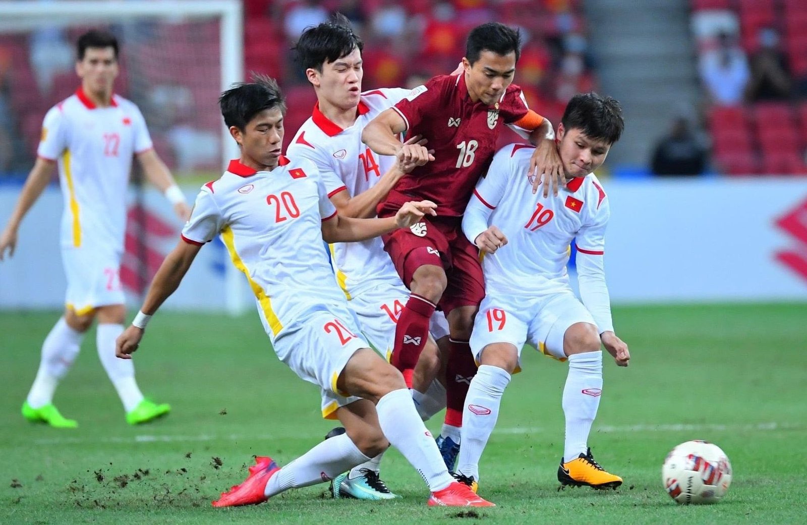 Gol pertama Thailand ke gawang Vietnam tercipta karena bermula dari serangan balik plus blunder pemain Vietnam, Nguyen Phong Hong Duy, yang terpeleset ketika gelandang Thailand, Thanawat Suengchitthawon, melepaskan umpan terobosan.