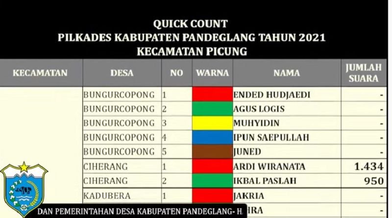 Link siaran langsung Perhitungan  Suara Pilkades Pandeglag bisa dilihat dibawah artikel ini.