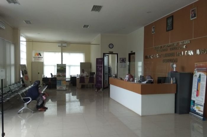 Sejumlah warga antre di gedung pusat layanan haji dan umrah terpadu di kantor Kemenag Kabupaten Pandeglang, kemarin. Kepastian terkait calon jamaah haji untuk bisa berangkat menunaikan ibadah haji masih harus menunggu informasi lanjutan dari Pemerintah Arab Saudi. Yanadi/Bantenraya.com