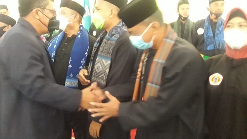 Ketua Harian KONI Pandeglang Fery Hasanudin memneri ucapan selamat kepada Ketua IPSI Pandeglang Dadan Saladin dan pengurus lainnya Muhaemin/Bantenraya