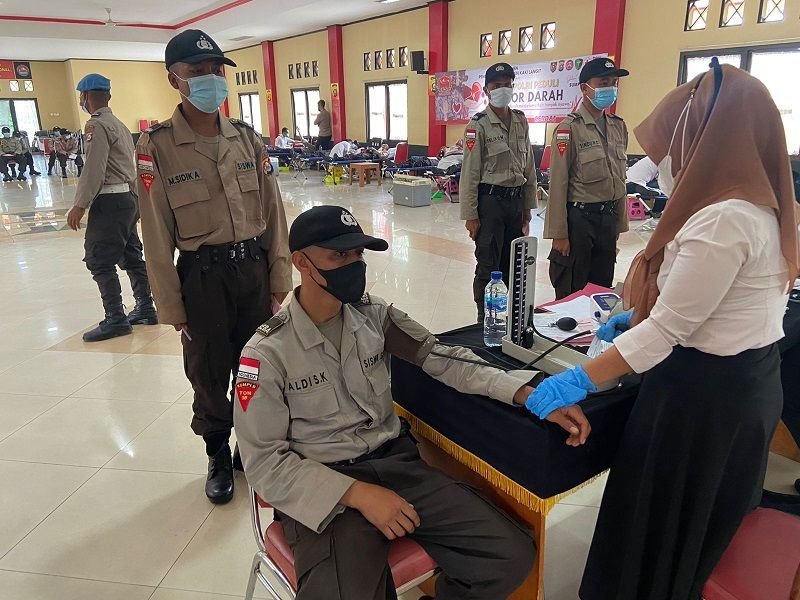 Dalam giat Kampus Polri Peduli dirangkaikan pembagian bantuan sosial sebanyak 200 paket sembako untuk masyarakat sekitar SPN dan donor darah para siswa Diktuk Bintara Polri T.A 2021 bersama dengan para gadik atau pengasuh dan warga SPN Polda Banten total sebanyak 300 orang.