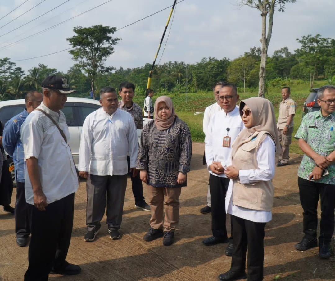 BANTENRAYA.COM – Bupati Pandeglang, Raden Dewi Setiani meninjau lahan milik pemerintah daerah yang akan digunakan untuk pembangunan sekolah rakyat dari Pemerintah Pusat.