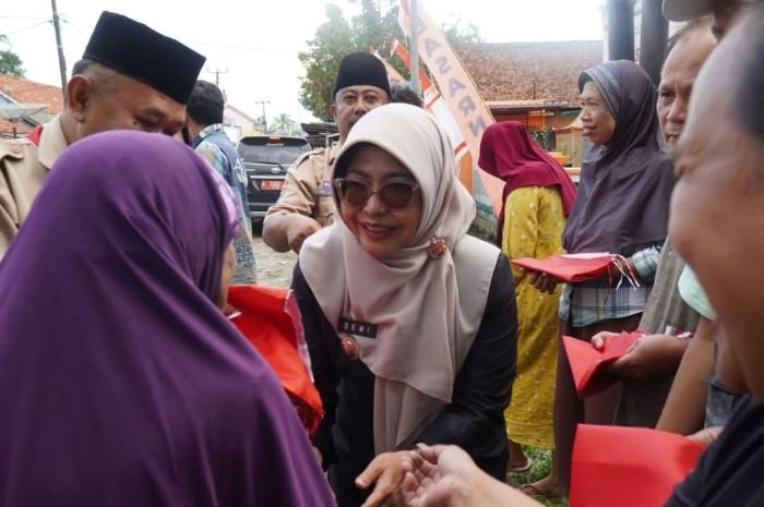 Meriahkan Agustusan, Bupati Dewi Bagikan Bendera Merah Putih ke Warga