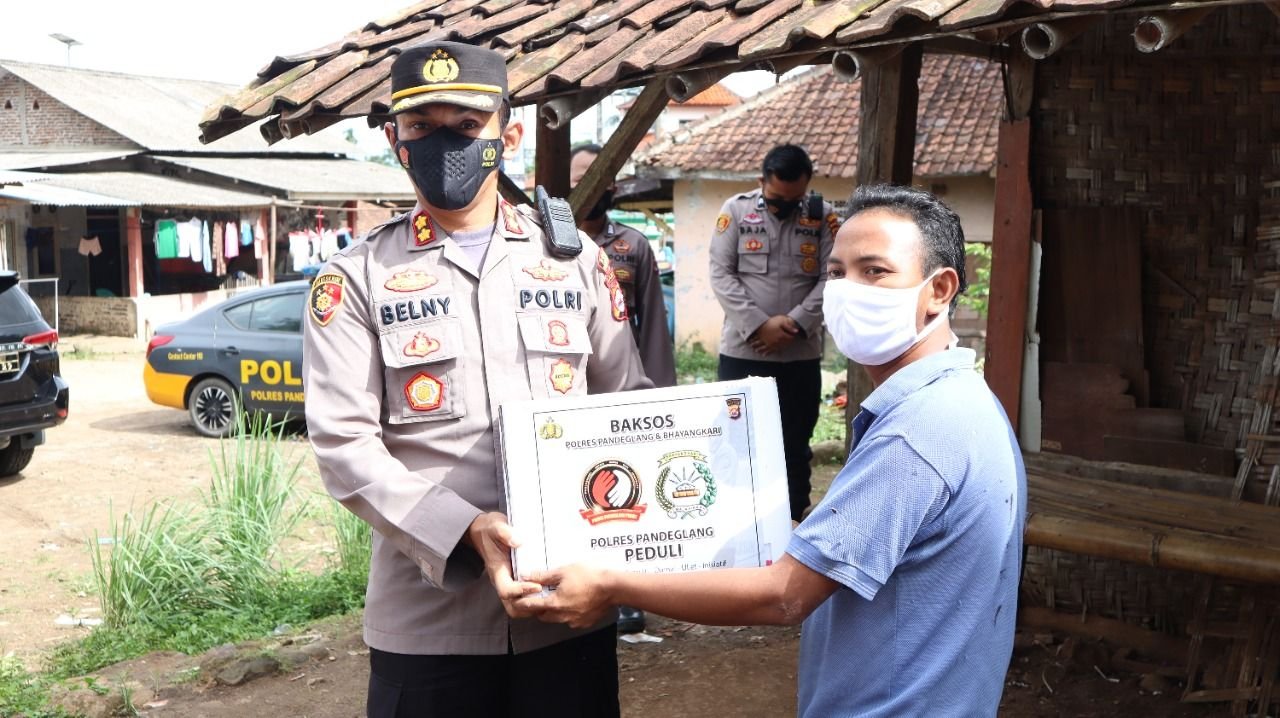 Kapolres Pandeglang AKBP Belny Warlansyah mengatakan, bantuan sembako dan uang tunai itu disalurkan sebagai bentuk kepedulian Polri.