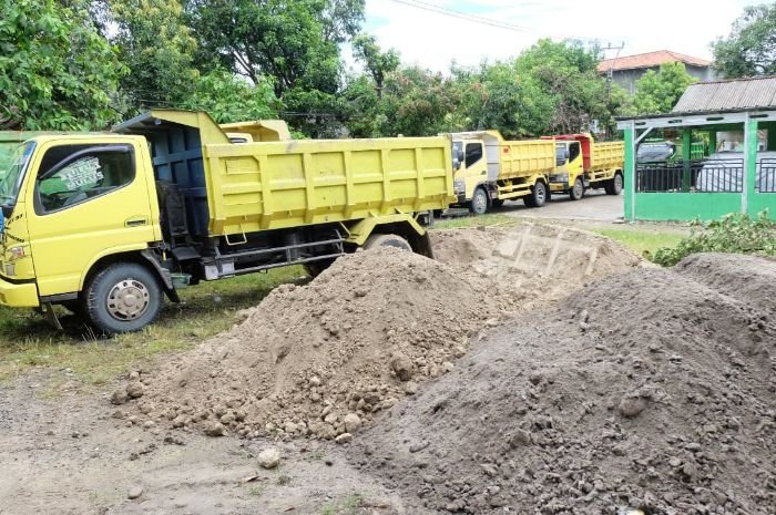 Sejumlah kendaraan mengangkut limbah FABA PLTU 2 Labuan untuk pembangunan rumah masyarakat korban gempa bumi, Selasa 1 Februari 2022. Yanadi/Bantenraya.com