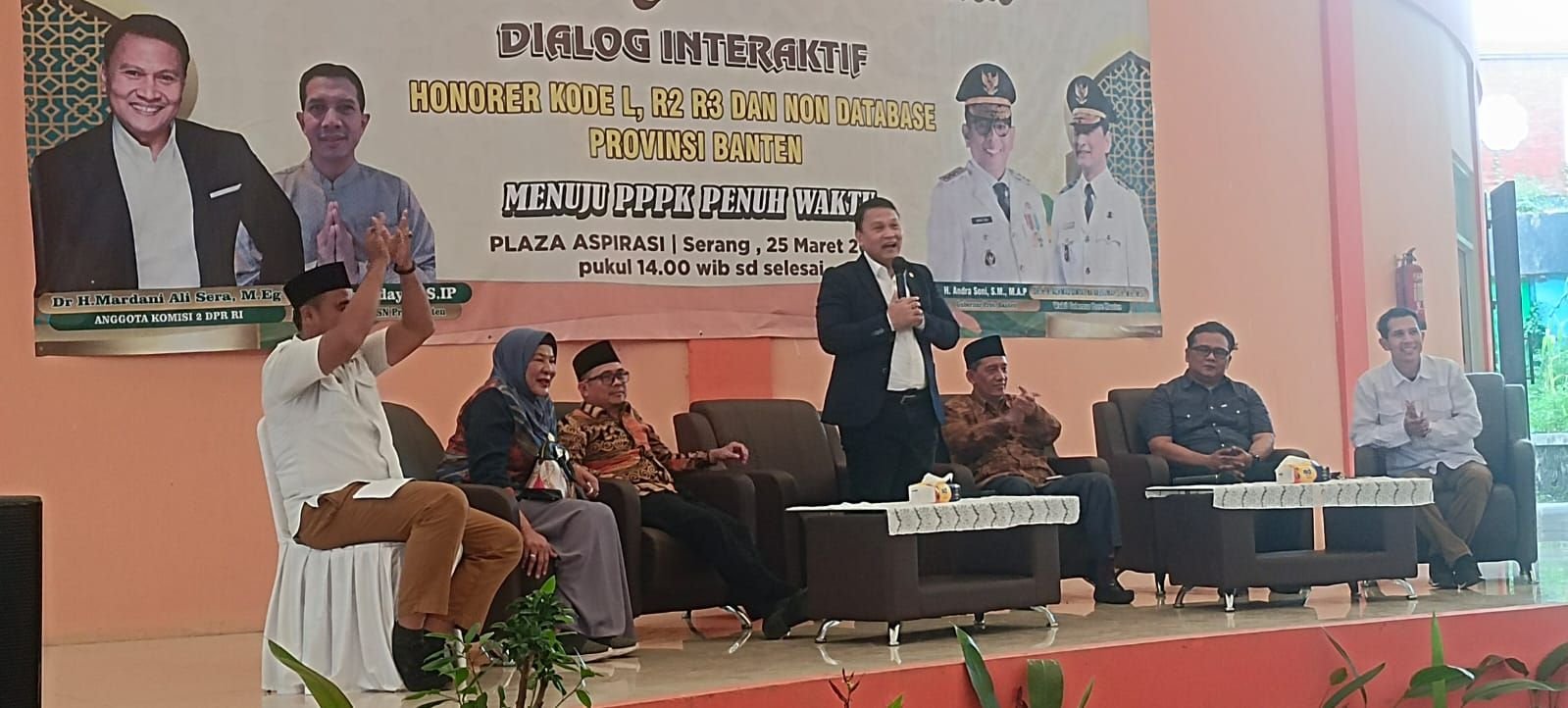 Hal itu disampaikan oleh anggota Komisi II DPR RI Mardani Ali Sera saat dialog interaktif honorer kode L, R2, R3, dan Non Database yang diselenggarakan oleh Forum Honorer Provinsi Banten di Plaza Aspirasi DPRD Provinsi Banten di Kawasan Pusat Pemerintahan Provinsi Banten atau KP3B, Kecamatan Curug, Kota Serang, Selasa, 25 Maret 2025.