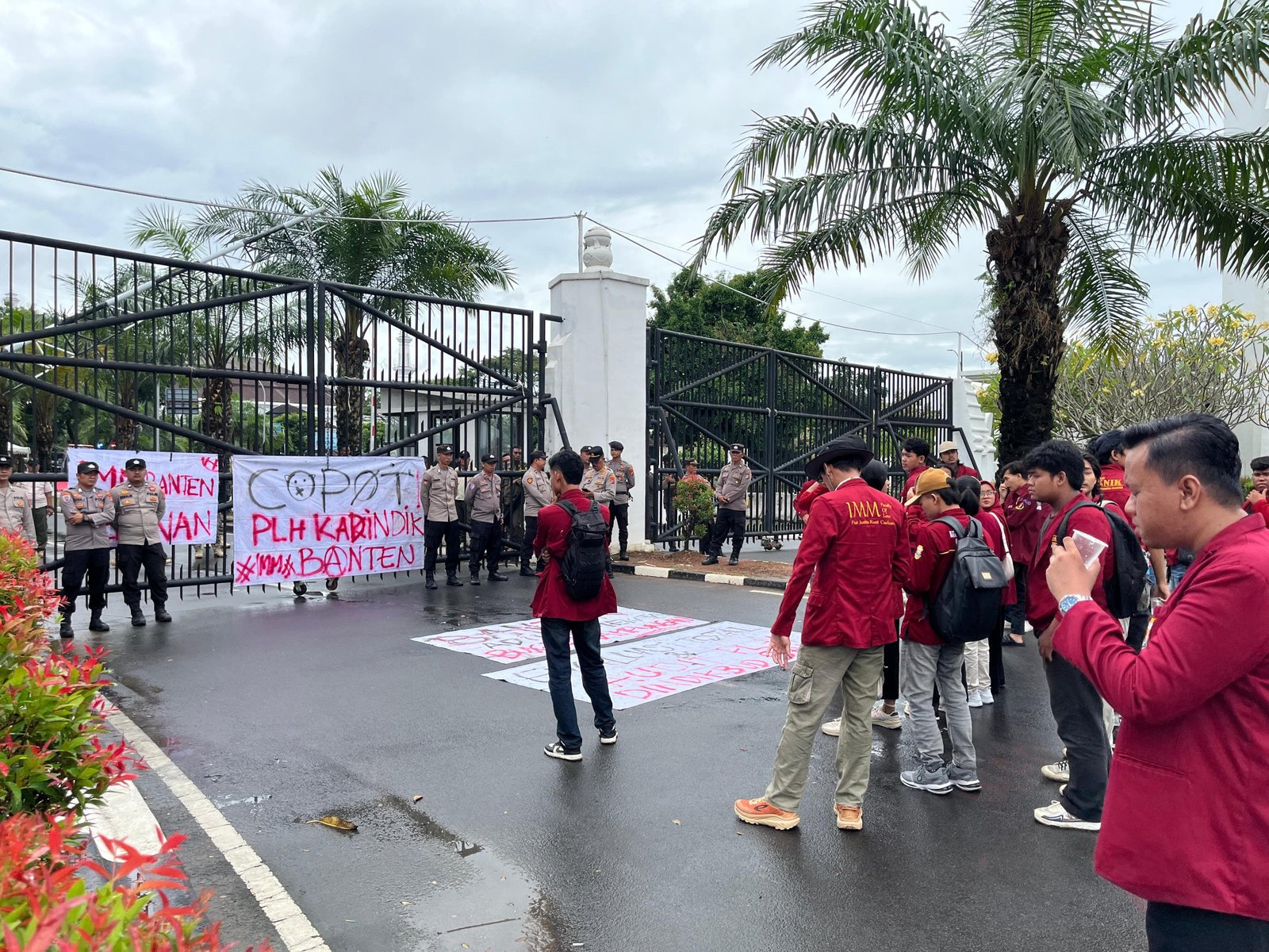 BANTEN RAYA.COM – Mahasiswa yang tergabung dalam kelompok Ikatan Mahasiswa Muhammadiyah (IMM) Provinsi menggelar aksi demonstrasi di depan gerbang masuk Kawasan Pusat Pemerintahan Provinsi Banten (KP3B), Rabu, (18/6/2025).