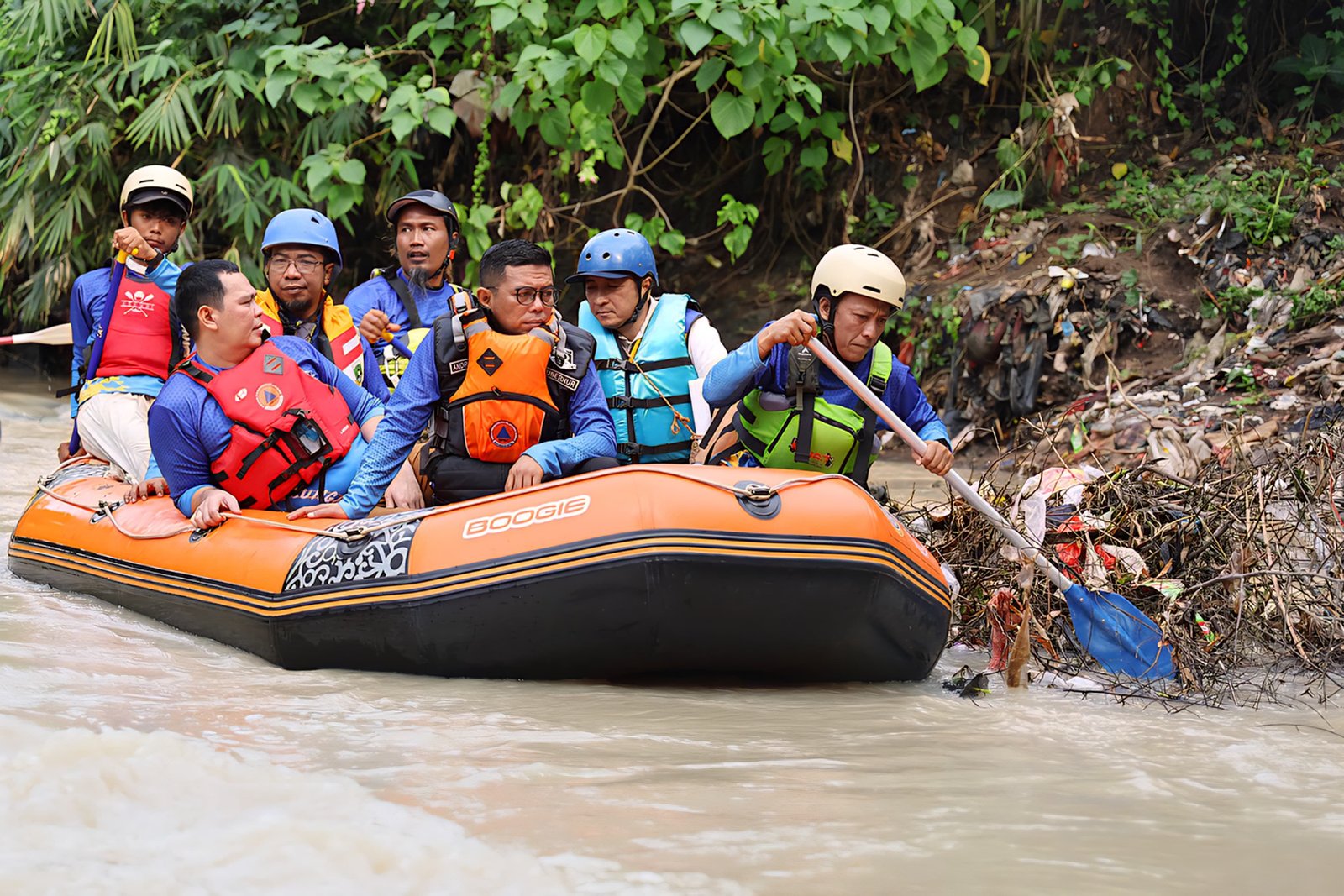“Perahu kita tadi juga sempat tersangkut. Dan ini sangat berpotensi menimbulkan banjir di wilayah hulu kalau tidak ditangani segera. Makanya kita sempat terhambat tadi sehingga hampir dua jam kita perjalanan dari start hingga finish,” katanya.