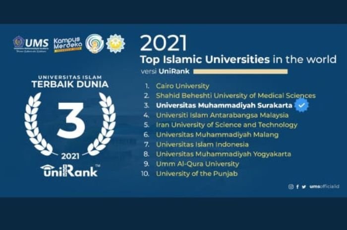 Universitas Muhammadiyah Surakarta menempati posisi ke-3 UniRank Islam terbaik dunia.
