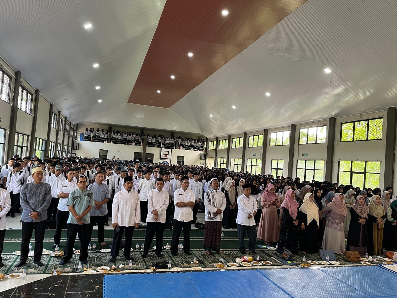Acara dimulai dengan pembacaan ayat suci Al-Qur’an dan shalawat Nabi yang menghadirkan suasana religius di tengah-tengah aula sekolah.
