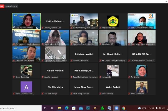 Kegiatan kuliah umum dari Untirta dan Ombudsman Banten ini dengan agenda sosialisasi dan edukasi tentang tugas, fungsi dan kewenangan Ombudsman RI dalam upaya peningkatan kualitas pelayanan publik secara virtual.