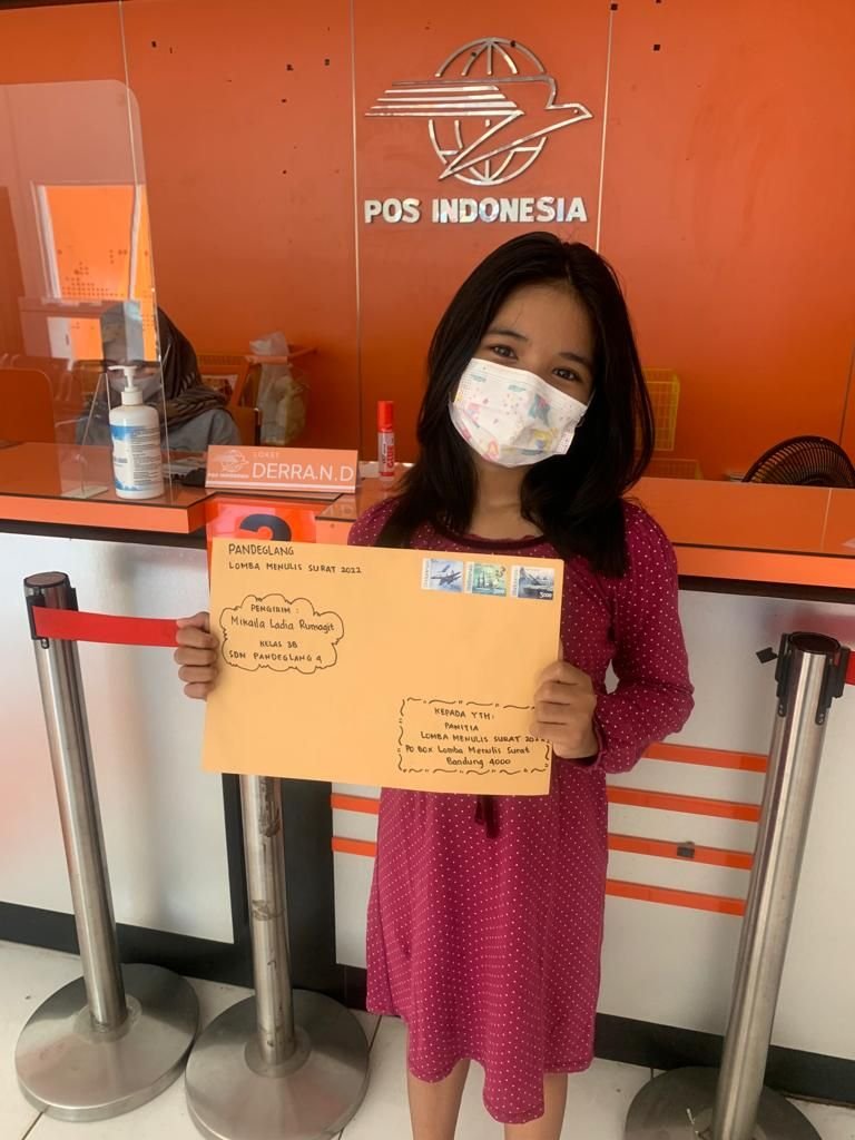 Betapa tidak, siswi kelas 2 Sekolah Dasar itu berhasil menyisihkan sebanyak 2.400 peserta dari seluruh Indonesia dan menyabet juara satu ajang lomba Menulis Surat Tingkat Nasional yang diselenggarakan oleh PT Pos Indonesia.