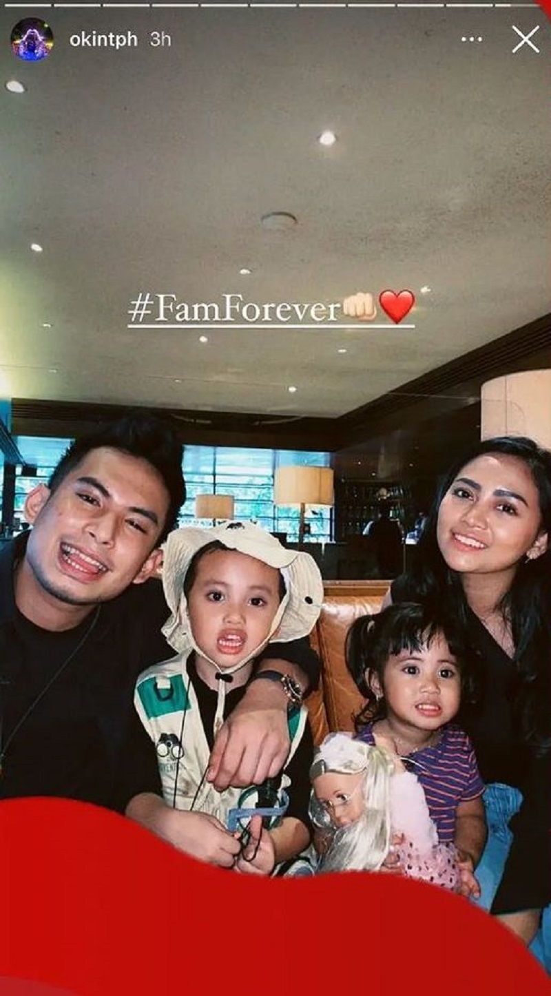 Beberapa waktu lalu, Okin juga sempat mengunggah foto di Instagram Story bersama Rachel serta kedua buah hati mereka, dengan caption #FamForever.