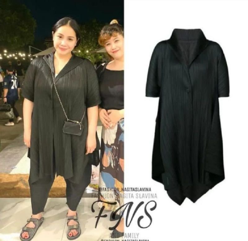 “#NagitaSlavina wearing #PleatsPleaselsseyMiyake ‘Pleated Flared Coat’ from modesens.com $790 / 11.300.000 IDR,” tulis captions akun tersebut.