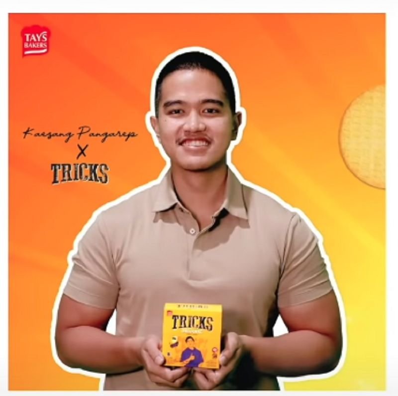 Dalam snack tersebut, Gambar ilustrasi Kaesang tampak menjadi brand ambasador TRICKS.