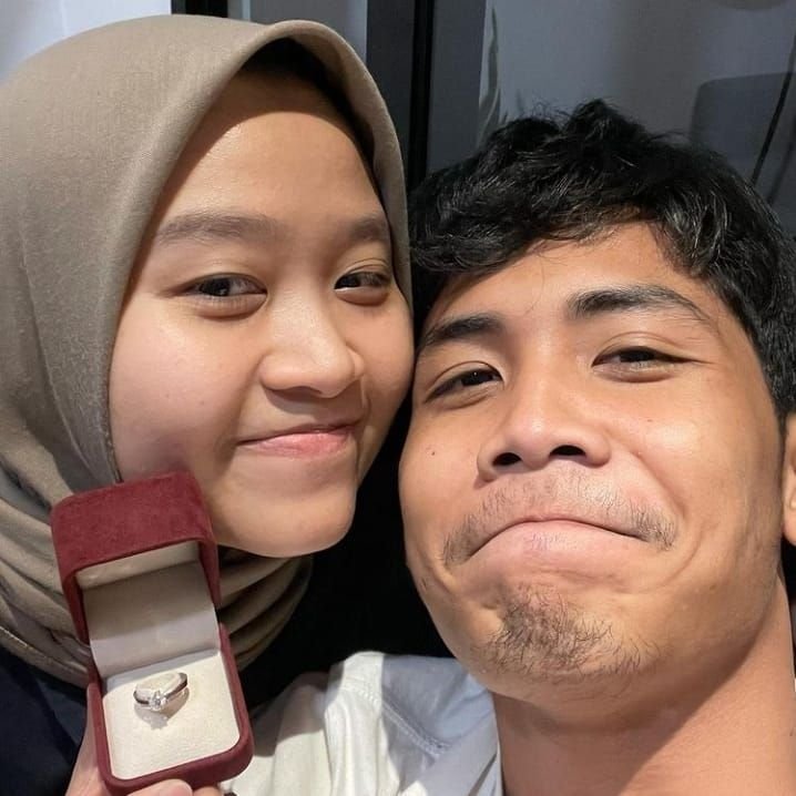 Terakhir, terlihat Alca Octaviani dan Bintang Emon sedang mingkem sambil memegang cincin lamaran tersebut.