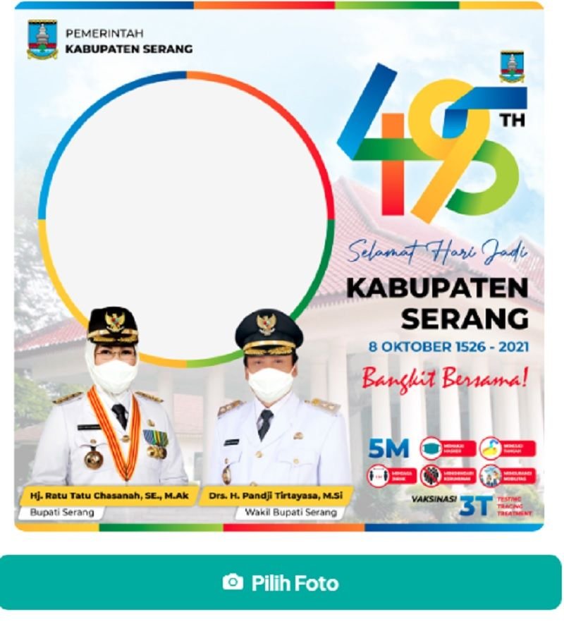 - Unggah Bingkai Campaign Download Twibbon Hari Jadi Kabupaten Serang 2021 Terbaru yang sudah anda download.