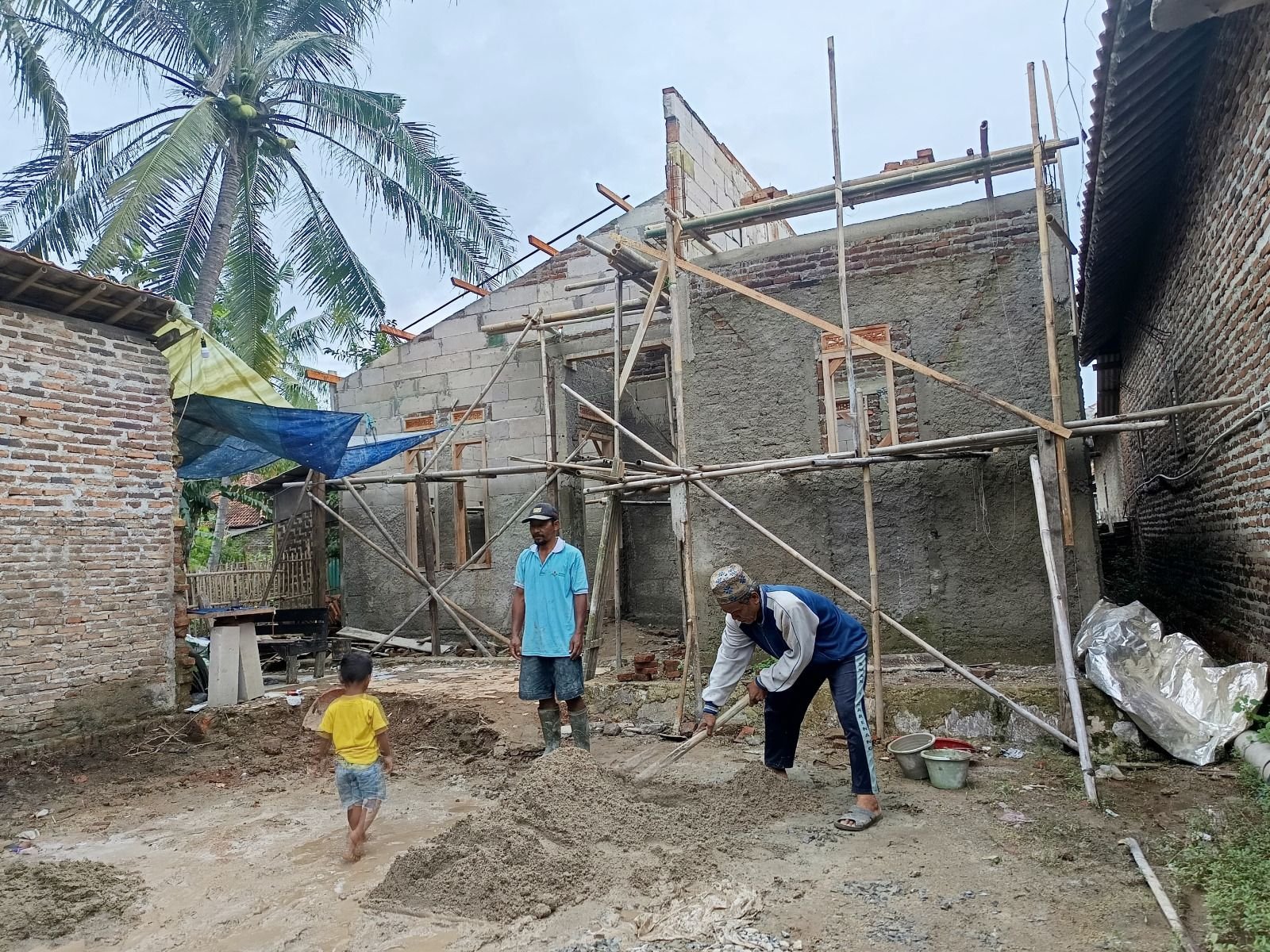 “Luas rumah sekitar 6×6 meter dengan dua kamar, ruang tamu, dapur dan kamar mandi. Progres pembangunan saya kira sudah 50 persen dan tinggal bagian atas sama plesteran dinding-dinding nya, ” jelasnya.