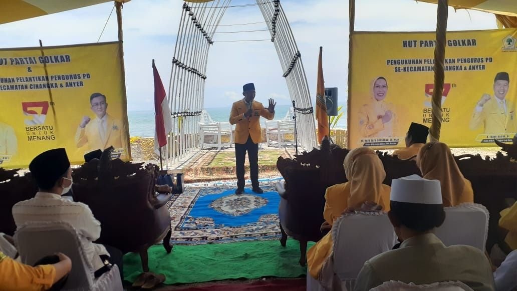 “Sekarang kursi di DPRD Kabupaten Serang berapa? Sembilan ya, berarti baru 15 persen,” ujar Andika saat memberikan sambutan pada acara HUT ke-57 Partai Golkar di Salsa Beach Hotel, Cinangka, Rabu 20 Oktober 2021.