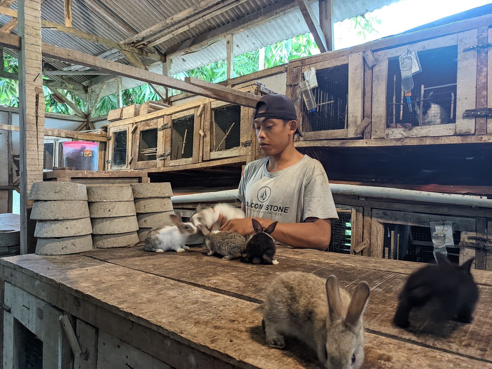 Bertempat di Desa Mekarbaru, Kecamatan Petir, pada Kamis, 22 Mei 2025, seorang pemuda bernama Budiyanto tengah sibuk memberi makan kelinci yang dipeliharanya.