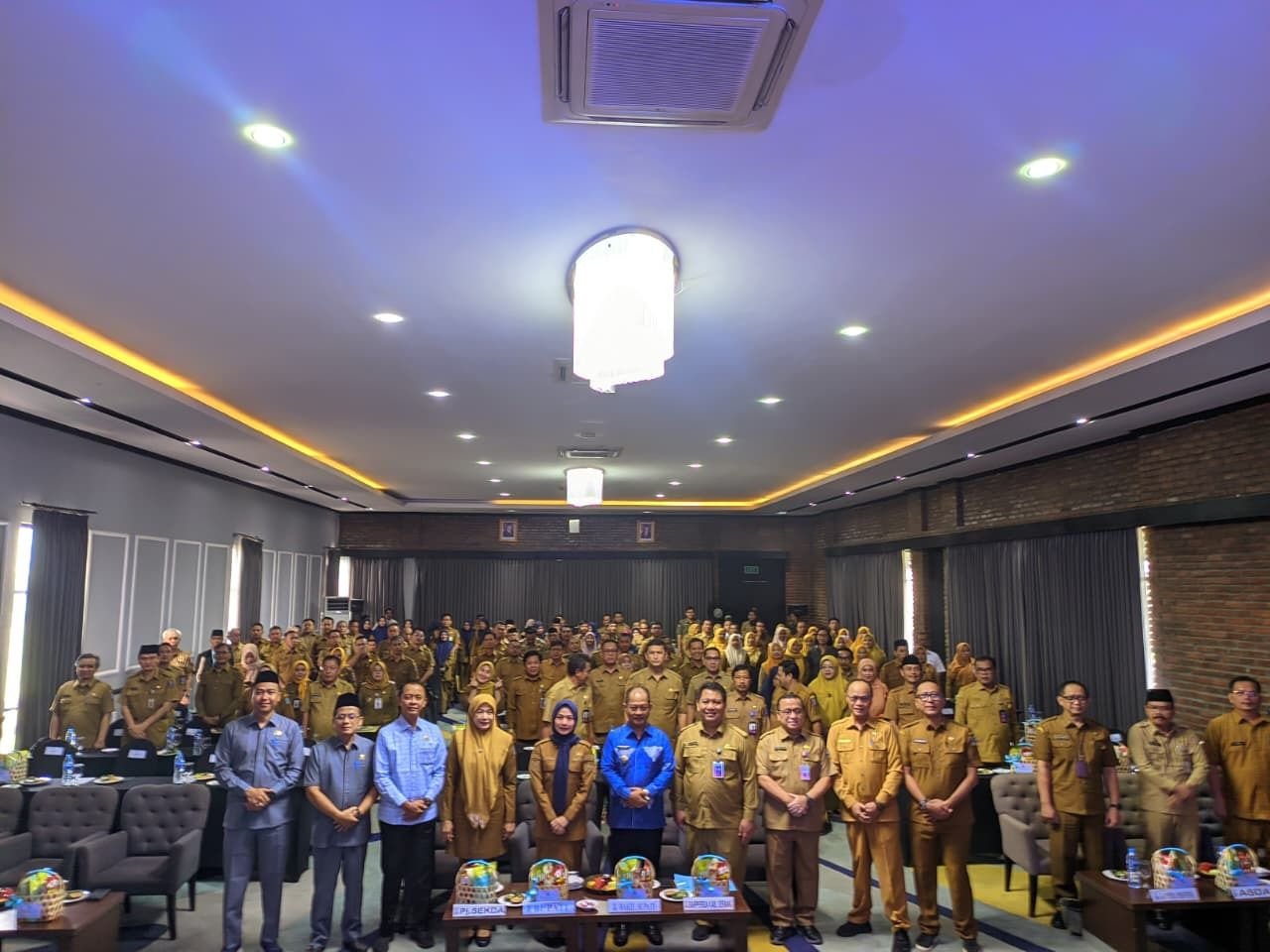 Jajaran Pemerintah Kabupaten Serang melakukan foto bersama saat Musrembang RPJMD tahun 2025-2029 di Forbis Hotel, Kecamatan Waringinkurung. Andika Reza Pragusti/Bantenraya.com