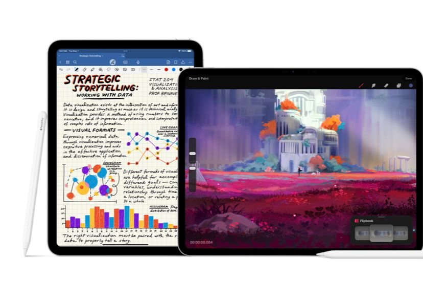 Gunakan fitur layang Apple Pencil untuk meninjau goresan sebelum membuatnya. Apple Pencil pairing dan terisi dayanya melalui USB‑C dan menempel secara magnetis di sisi iPad untuk penyimpanan.***