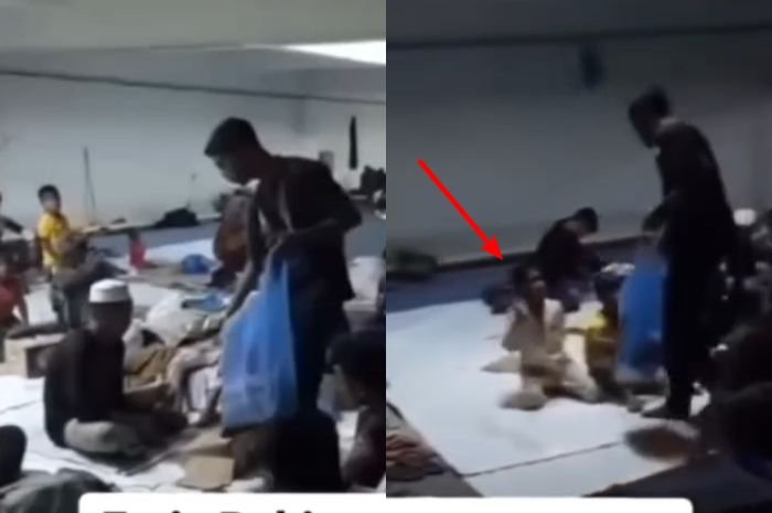 Dalam video yang diunggah, seorang petugas terlihat membagikan makanan kepada warga Rohingya, namun mereka menolak menerima.