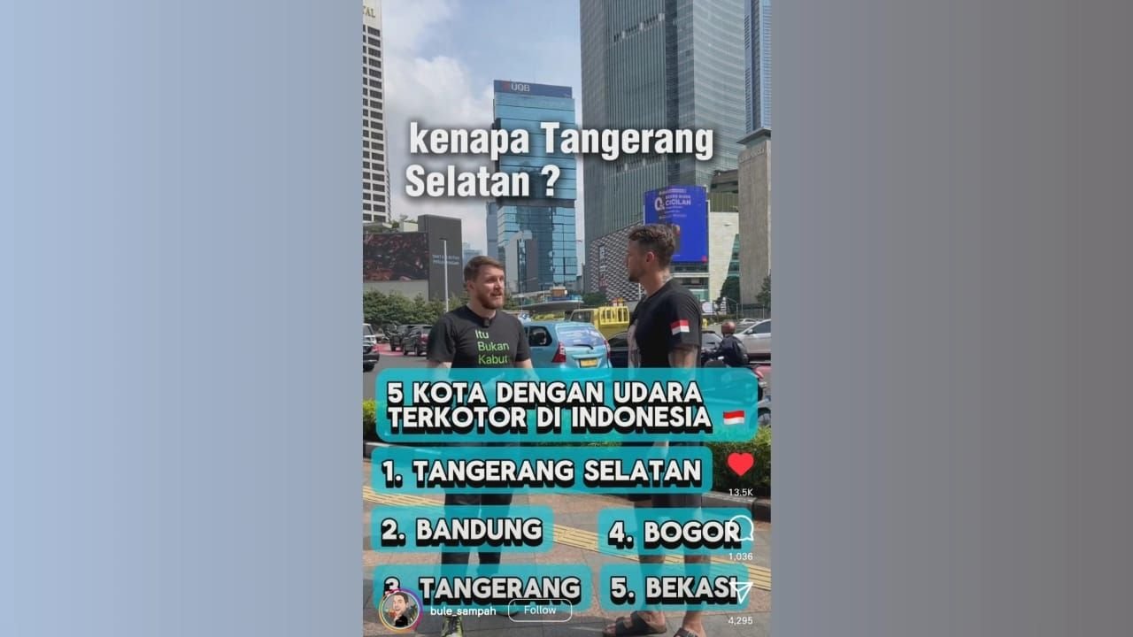 Dalam unggahannya, terdapat dua kota di wilayah Banten yang menjadi kota dengan udara terkotor, yakni Kota Tangerang Selatan, dan Kota Tangerang.