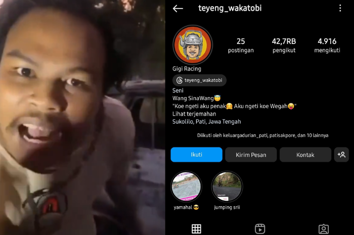 Di media sosial, Teyeng Wakatobi membranding dirinya sebagai Gigi Racing dengan konten video lucu dan seputar otomotif. ***