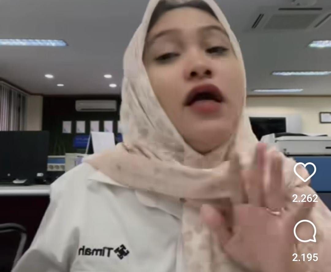 Perempuan yang diduga karyawati PT Timah tersebut merekam video dirinya sedang berada di sebuah ruangan yang diduga kantor ruang kerja.