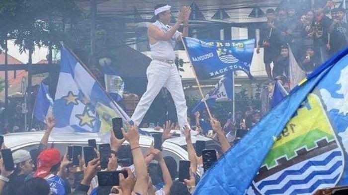Tidak hanya itu, dirinya bahkan membuka baju dan dilempar ke Bobotoh yang berkerumun di jalan Wastukencana, Bandung.