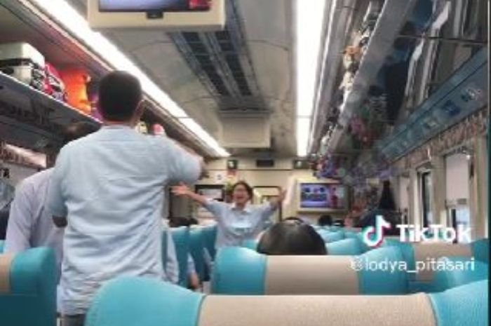 Video sekelompok orang main kuis di dalam gerbong hingga ganggu penumpang kereta lainnya viral di media sosial. TikTok @lodya_pitasari