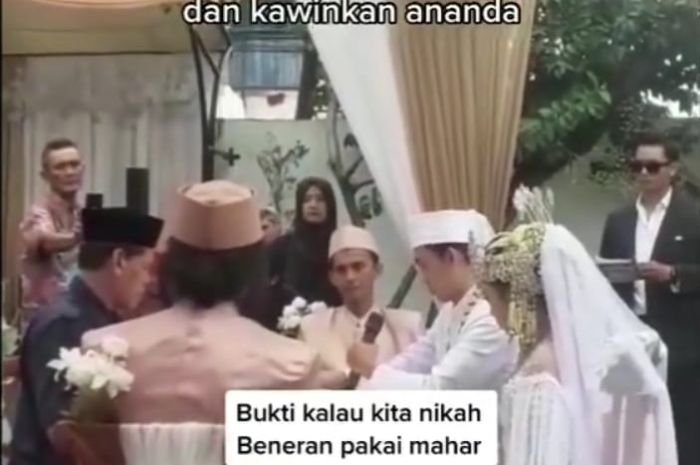 Dalam unggahan tersebut, memperlihatkan sepasang pengantin tengah menggelar akad nikah.
